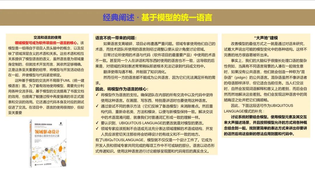 UBIQUITOUS LANGUAGE,有的书翻译为通用语言,有的书翻译为统一语言,其核心要点为:
