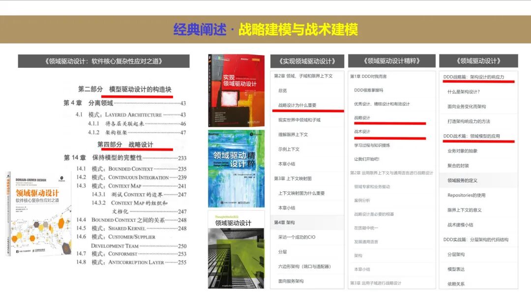 DDD 相关经典著作,一般都将 DDD 划分为战略设计和战术设计两部分。《领域驱动设计·软件核心复杂性应对之道》和《实现领域驱动设计》都明确有战略设计的提法,其他两本书则明确提出了战略设计和战术设计。