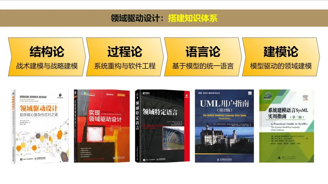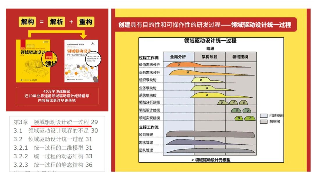 《解构领域驱动设计》出版于 2021,据了解作者张逸是业内知名 DDD 专家,也是《实现领域驱动设计》一书的审校。在《解构领域驱动设计》这本书里,作者试图将 DDD 与 RUP 融合起来,提出了 DDDUP(领域驱动设计统一过程)模型,能否成功,我们拭目以待。