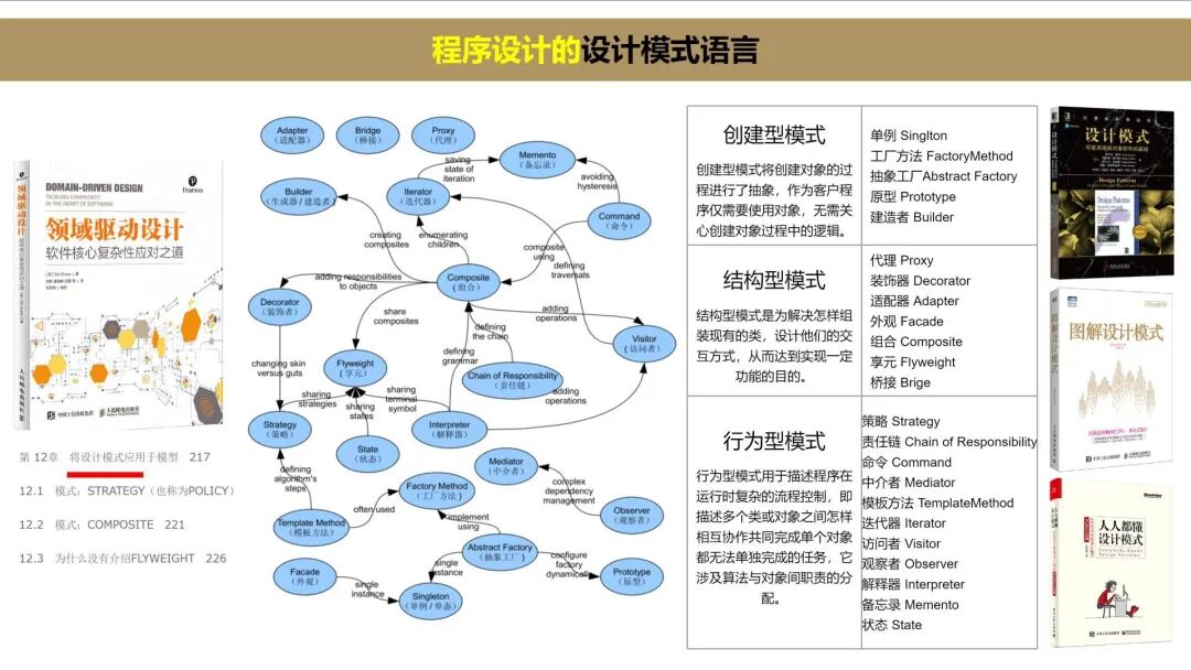 在《领域驱动设计·软件核心复杂性应对之道》这本书里,明确提到了设计模式,这可以看做比编程语言更高一个层级的语言,提高了思维的抽象层次。