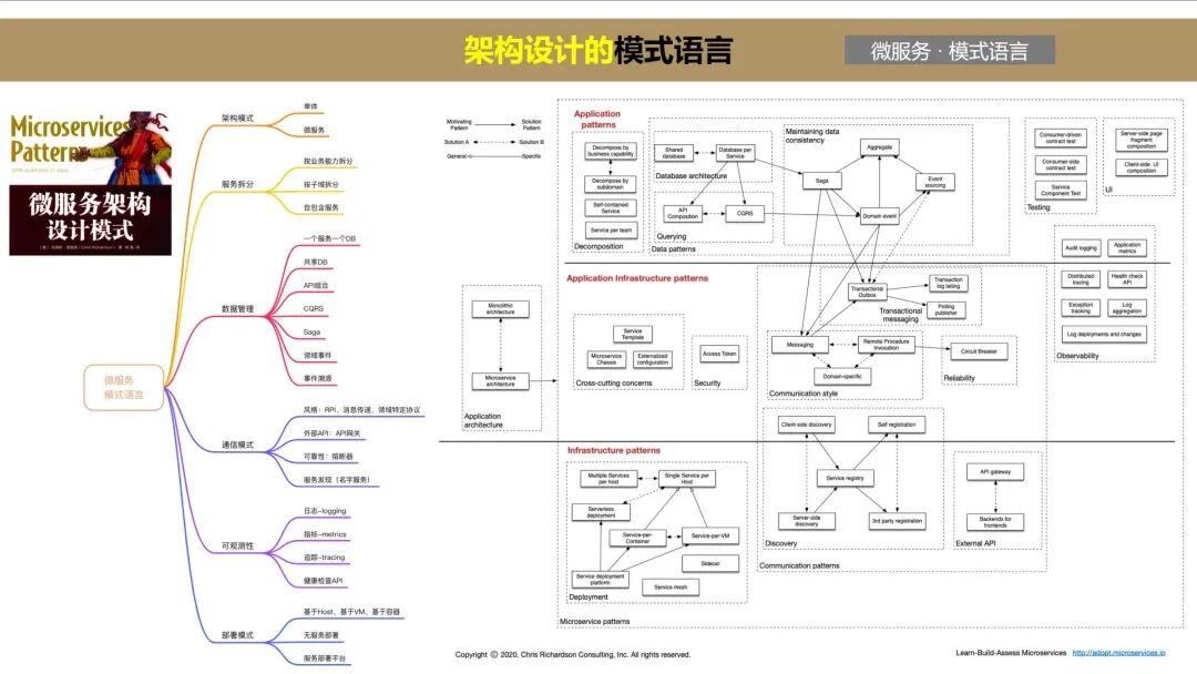《微服务架构设计模式》和《面向模式的软件架构》在架构设计层面建立起了一套完整的模式语言,比设计模式再高一个层级。
