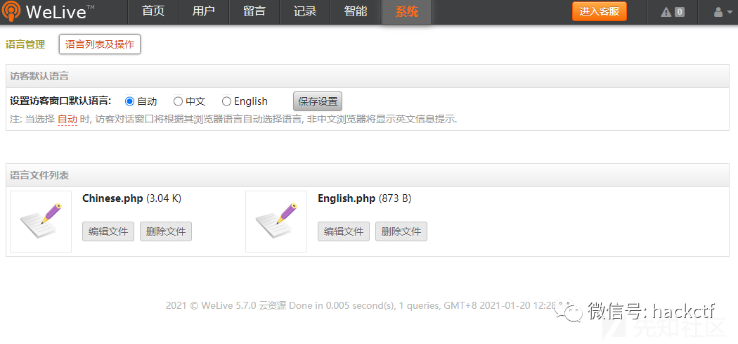 下一步当然是getshell,找了一圈发现直接可编辑语言配置文件: