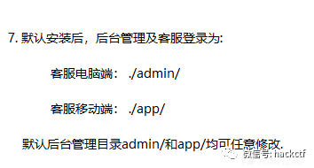 从官网查找客服软件的教程。发现后台路径为:/admin