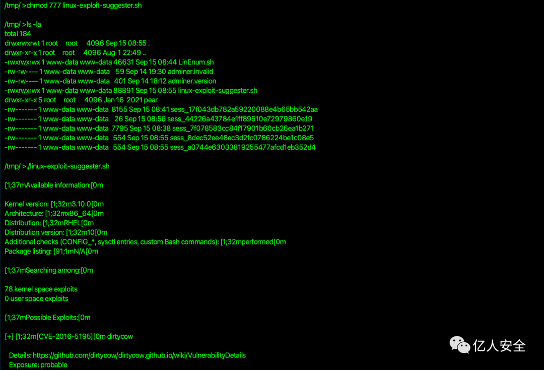 通过 linux-exploit-suggestor 返回的结果,其中存在脏牛漏洞