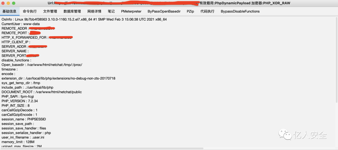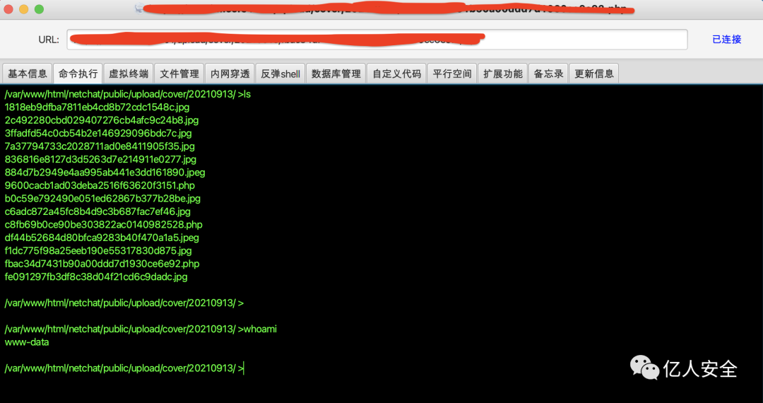 至此 webshell 成功上线,但可惜的是这是 docker 环境。同时为了维持对目标站点的控制,继续上传了一个哥斯拉马