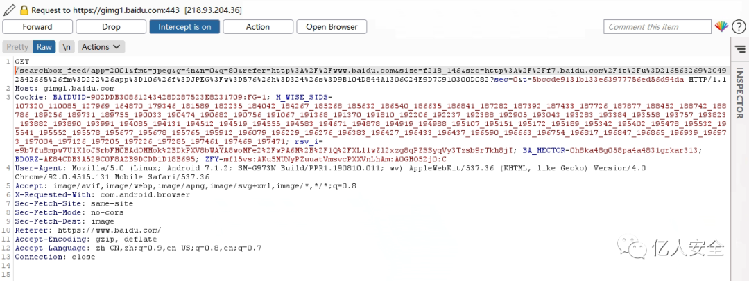 访问百度,在 Burp Suite 中成功抓取到数据包
