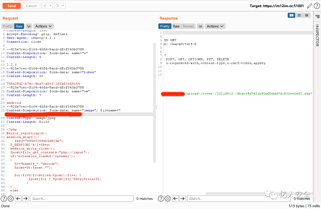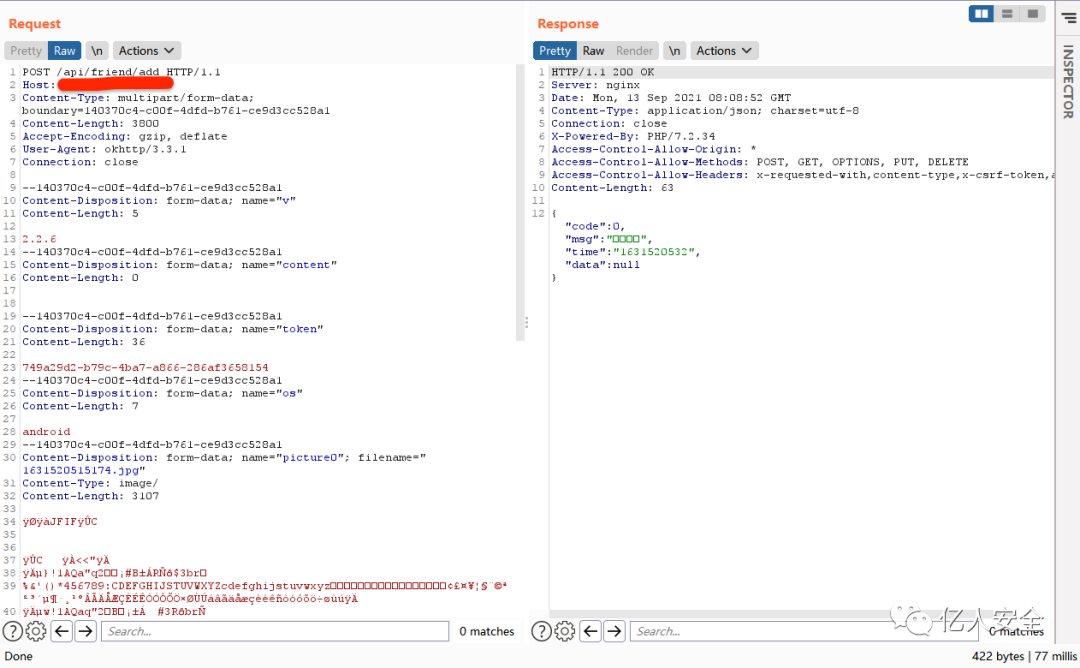 发布动态处存在文件上传使用 Burp Suite 截取数据包,测试后发现目标站点只返回0或1