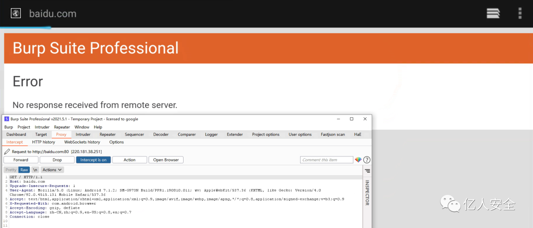 https://www.baidu.com在 Burp Suite 中成功抓取到 https 数据包