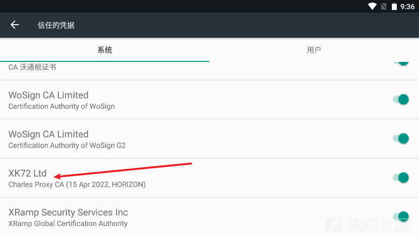 几秒钟之后重启就可以发现凭据里有了charles的证书