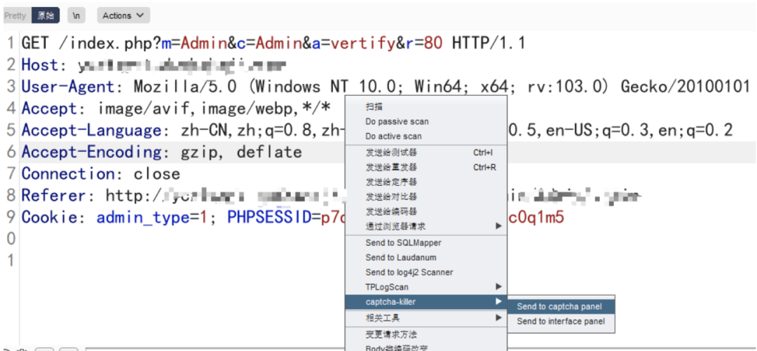 1)访问登录接口,点击验证码刷新,用burpsuite抓包