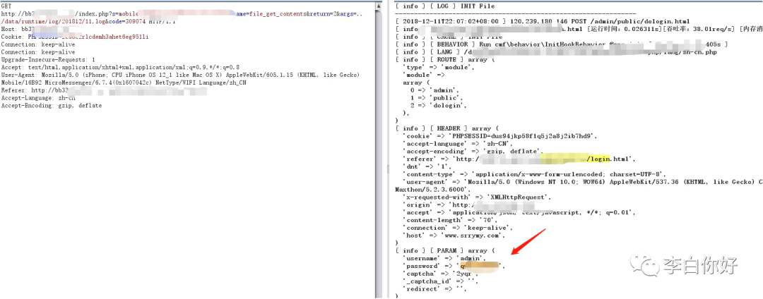 那么就很简单了,用file_get_contents 读了一下近几天的日志,找到了后台的管理账号密码