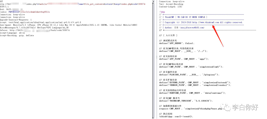 用file_get_contents读了一下index.php,发现是thinkcmf。