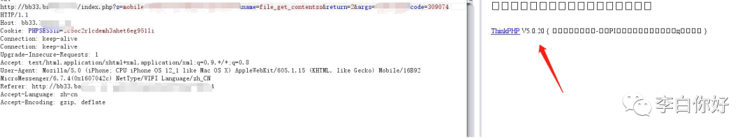 发现报错了,tp 5.0.20,看一下ip发现是阿里云的。