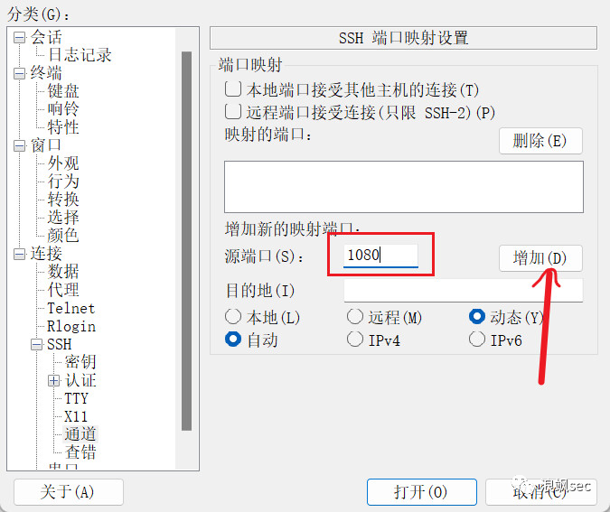 3.输入端口,点击添加