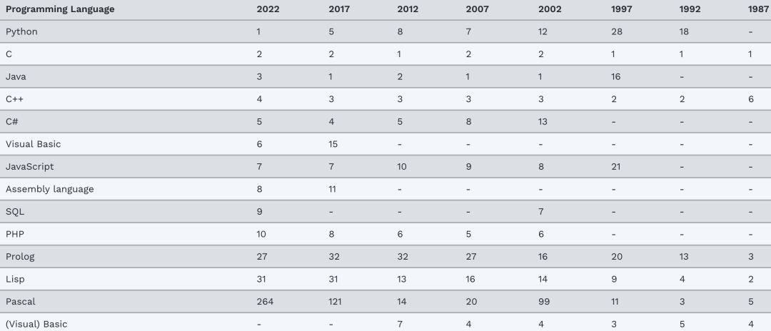 这个排行榜可以用来考察你的编程技能是否与时俱进,也可以在开发新系统时作为一个语言选择依据。