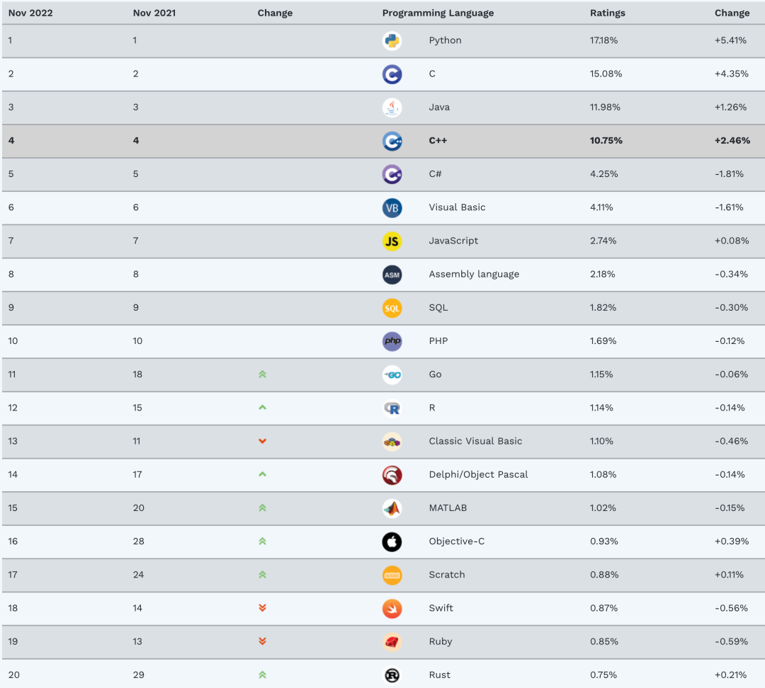 近日,最新的 TIOBE 十一月编程语言榜单重磅发布,快来看看有哪些值得关注的变化吧!