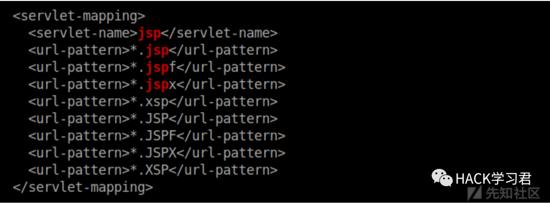 $JETTY_HOME/etc/webdefault.xml配置文件,默认情况下会将下面类型文件解析为JSP文件