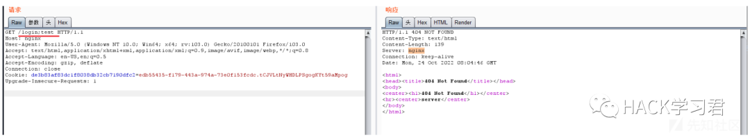 接着向Nginx服务器请求包添加相同的数据,响应包为404