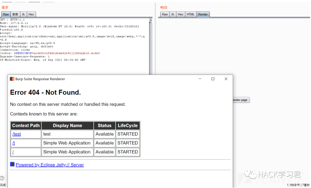 通过浏览器访问,jetty会正常进行工作,但是,如果我们在Host标头中附带不属于xml Item标签内的信息通过GET请求发送,在应用响应的结果中会显示目录上下文信息
