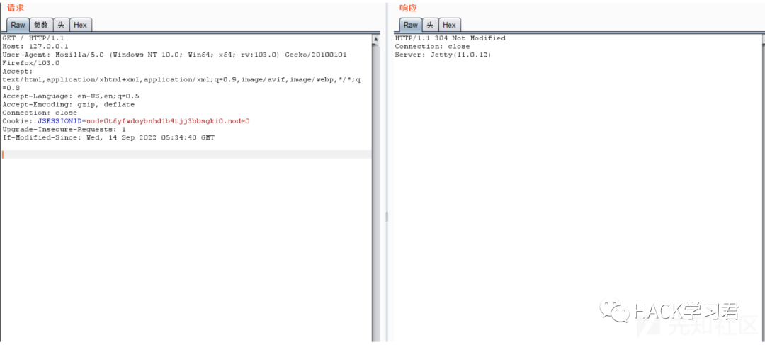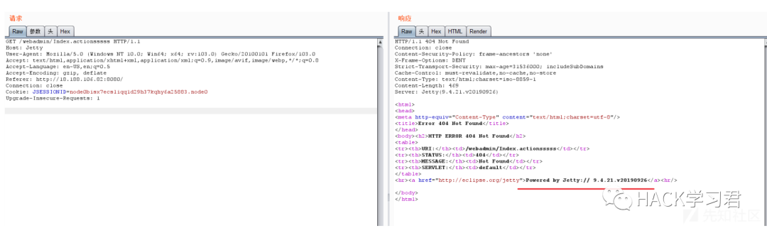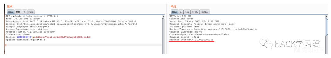 发送HTTP请求时,响应包的Server标头会返回Jetty版本信息(默认返回)。