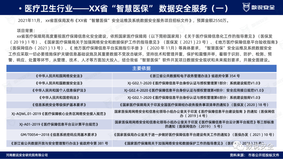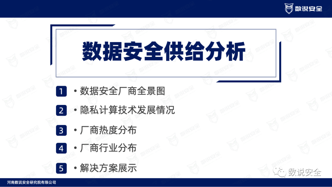 数据安全是网络安全重要热门市场,且具有非常广阔的发展前景与市场需求。数说安全致力于网络安全产业研究,发布《2022年数据安全市场报告》,该报告从数据安全背景与政策、市场发展概况、重点行业市场需求侧分析、供给侧分析等维度,研究分析了我国数据安全市场的概况与细节。《2022年数据安全市场报告》由数说安全发布,报告及其信息内容、文字表述、组合图表、界面设计、版面框架、数据等知识产权归北京赛博英杰科技有限公司所有,均受中华人民共和国著作权法、商标法、反不正当竞争法等法律法规的保护。未经许可,禁止一切商业性质或以商业为目的的传播、使用、更改、报道、摘录及引用;个人在非商业性质的报道、摘录、引用等方式使用时,不得侵害他人权益,且须注明版权来源及所有者。您的转发与分享