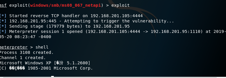 set rhost 192.168.201.95 注意这里的ip为xp系统的ip地址
