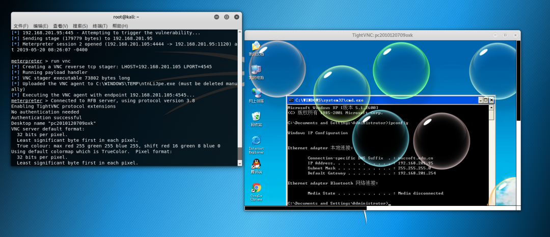 1.首先需要下载kali安装到VMware中,如何安装参考我之前的文本,要想复现该经典漏洞MS08_067需要一个xp系统,防火墙关闭。这里xp系统的安装就不多做介绍了。