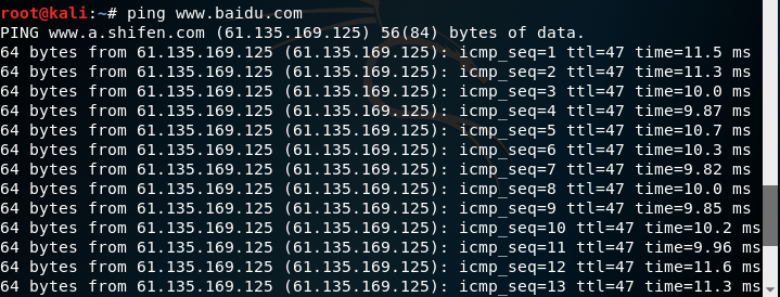 2.下载好kali后需要验证网络是否通畅,出现以下界面则网络通畅