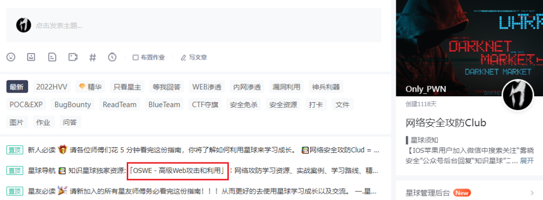 同时知识星球刚刚发布了最新的「OSWE - 高级Web攻击和利用 」,是开放给星球们的,可以在星球浏览到。