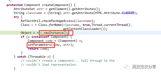 因此漂亮鼠分析出了object标签进行Component对象注入,在javax.swing.text.html.ObjectView类中,我们可以找到示例代码。