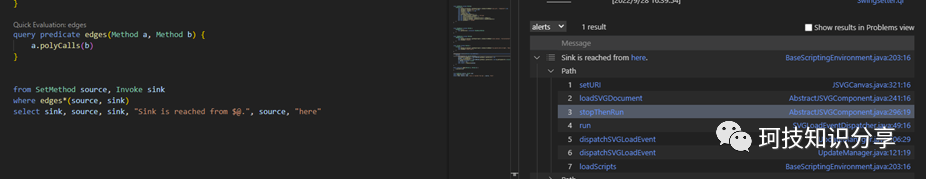 那么我们可以反编译rt.jar和CobaltStrike.jar,建立codeql数据库,寻找符合条件的类和setter。由于之前找过fastjson的链,所以稍微改改就行,ql如下。