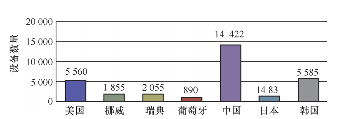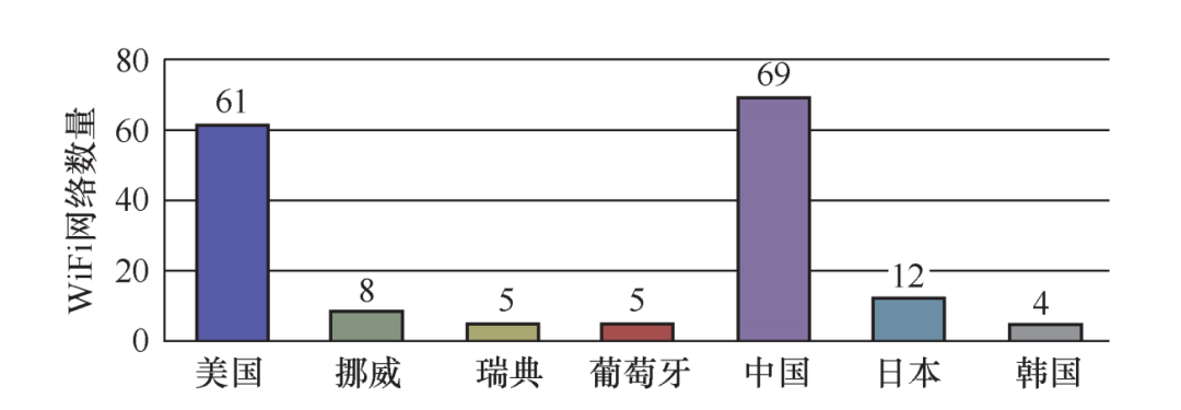从2019年1月到2019年7月,我们从7个国家(中国、美国、葡萄牙、瑞典、挪威、日本和韩国)共176个WiFi网络中收集了31850个不同设备发出的广播与多播流量数据。图2和图3展示了数据采集的WiFi网络数量和设备数量的国家分布。