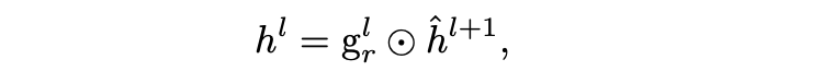 其中Wt是一个可学习的权重向量。更新依赖于更新门和复位门。从下到上,掩码会逐层更新。l层隐藏状态hl被生成为