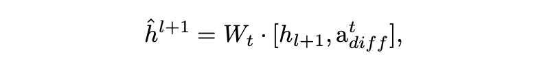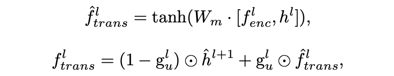 其中⊙表示entry-wise product。随后,将所提取的l层编码器的特征与其隐藏状态hl混合,以通过使用以下公式来确定剩余/更新特征: