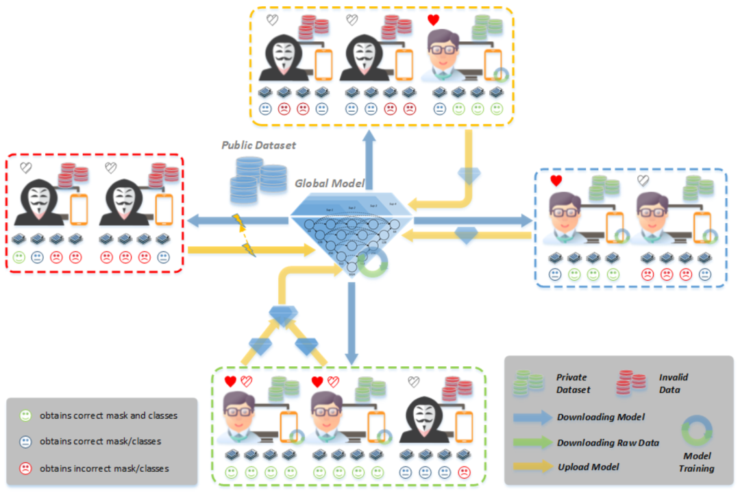 信息物理系统(CPS)是工业4.0的重要组成部分,旨在通过计算机网络建立网络世界和物理世界之间的双向连接。对于医疗信息物理系统(MCPS),它总是从健康/医院信息系统(HIS)中更新,继承大量的医疗大数据,在嵌入式软件中训练健康监测和疾病检测的模型。联邦机器学习(ML)作为边缘计算场景中的知识共享模式,它同步边缘服务器上提交的信息(如网络参数和梯度),以更新框架叶节点的本地模型。其有限的信息共享更有利于保证数据安全。数据共享模式似乎已经被用来收集数据,并成功地实现了比人类更高层次的认知模式。以胸部CT图像序列中的经典分割任务为例,一组放射科医生根据自己的阅历经验,分别手工勾勒出每个结核的边界作为感兴趣区域(ROI)的分割标记。然而,在临床实践中,每个观察者的经验总结是一个漫长的过程。结论性的诊断往往充满了缺乏经验的观察者的主观性,因此许多感知偏差反映了过分割和欠分割的分割标志。并且,仅仅依靠来自具有不同经验的观察者的不灵活的注释作为黄金标准可能会在原始数据集的标签列表中带来许多错误。