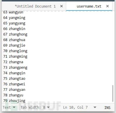 其中,既有 chenying、chenyun 这类普通账号,也有 admin、ceshi 这类后台账号,结果存为 username.txt: