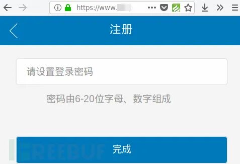 在注册页面 https://www.xxxx.com/Wap/User/register 输入未注册过的手机号点击“获取验证码”后、输入收到的短信验证码后提交,进入密码设置页面: