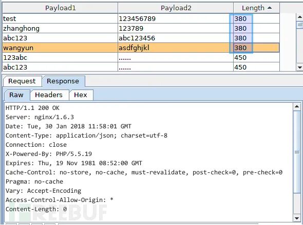 将 mobile 参数值定为枚举变量、以常见国人姓名拼音 top500 和常见后台账号作为字典,在枚举结果中用,应答包长度为 561 的均为有效账号: