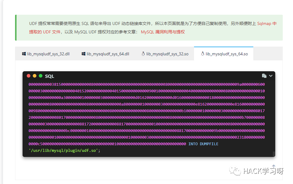 使用国光师傅的网站https://www.sqlsec.com/udf/