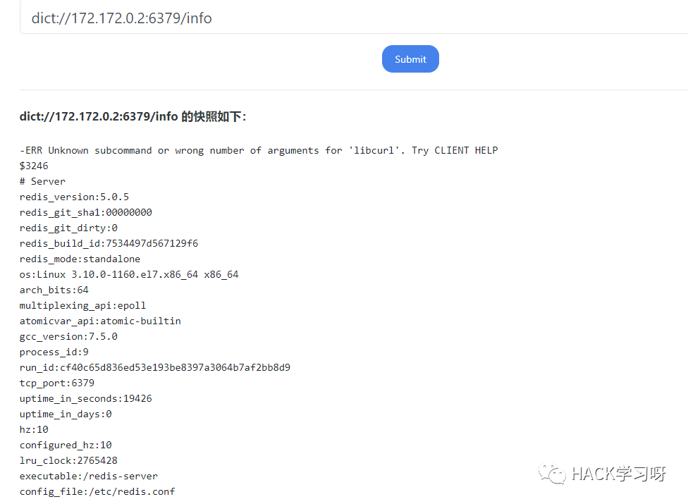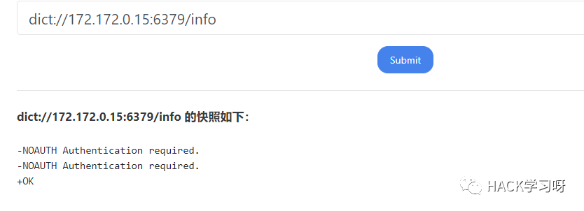 dict://x.x.x.x:6379/<Redis 命令>成功执行info命令