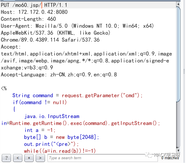 跟上面一样只是发送的包是put的,准备一个jsp一句话