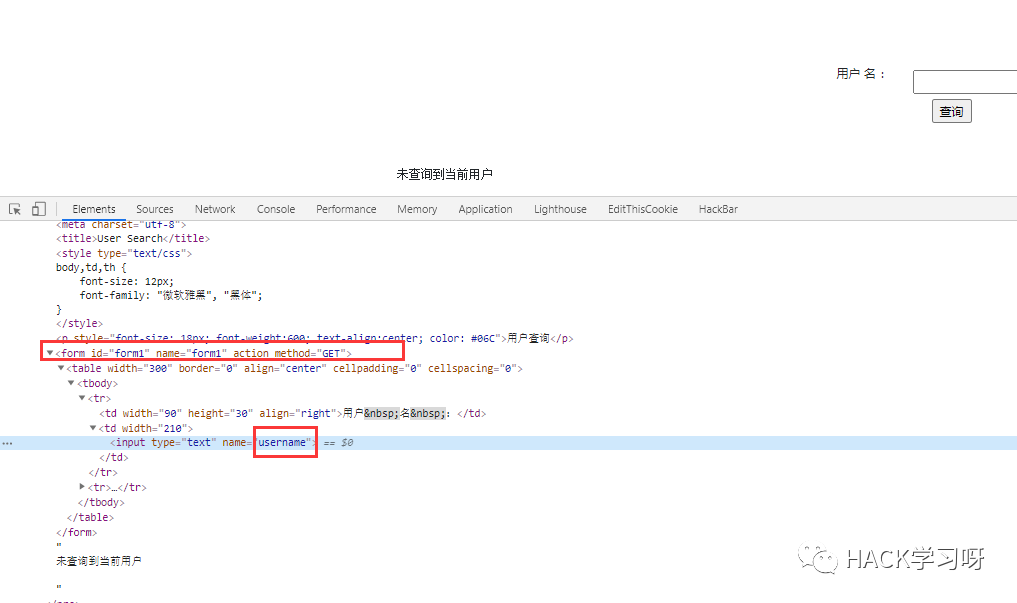 通过查看html表单可以发现是通过get传给当前文件的参数是username