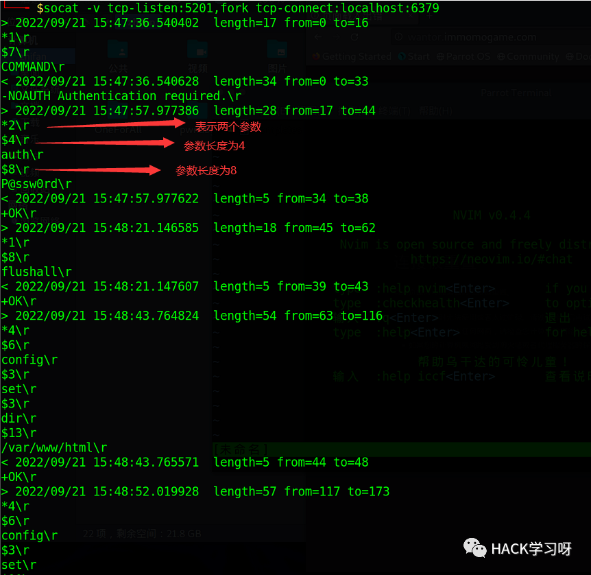 dict://172.172.0.15:6379/auth [email protected]gopher 协议因为需要原生数据包,所以我们需要抓取到 Redis 的请求数据包,在本地安装Redis,用root身份启动Redis-server,利用socat 做端口转发并抓取Redis-cli 和Redis-server通信的数据。