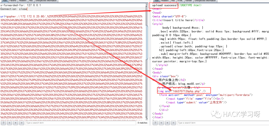 gopher://172.172.0.25:80/_{url编码两次的数据包}上传成功