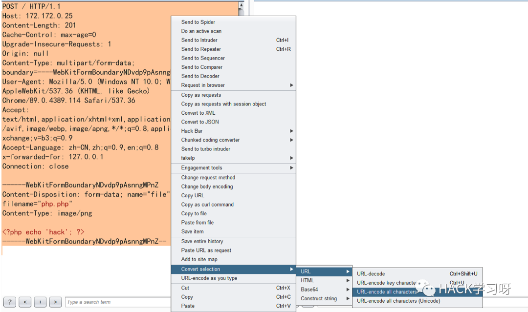 %>准备攻击数据包,将个 POST 请求二次 URL 编码