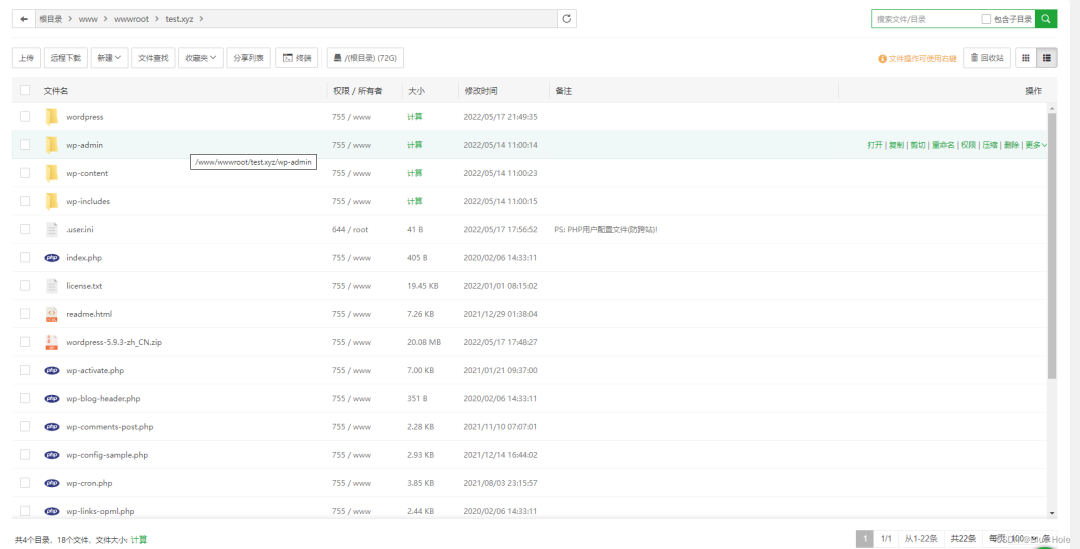 将下载完成后的Wordpress,通过宝塔面板或者xshell上传到域名的根目录下。