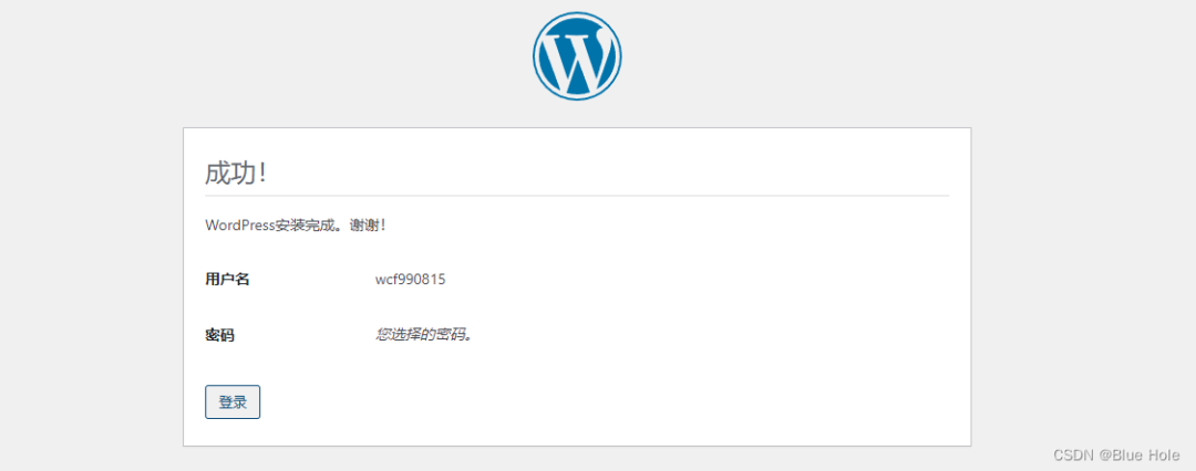 至此已经完成WordPress的基本安装,接下来在浏览器中输入服务器公网IP+端口号即可进入到WordPress的配置中心