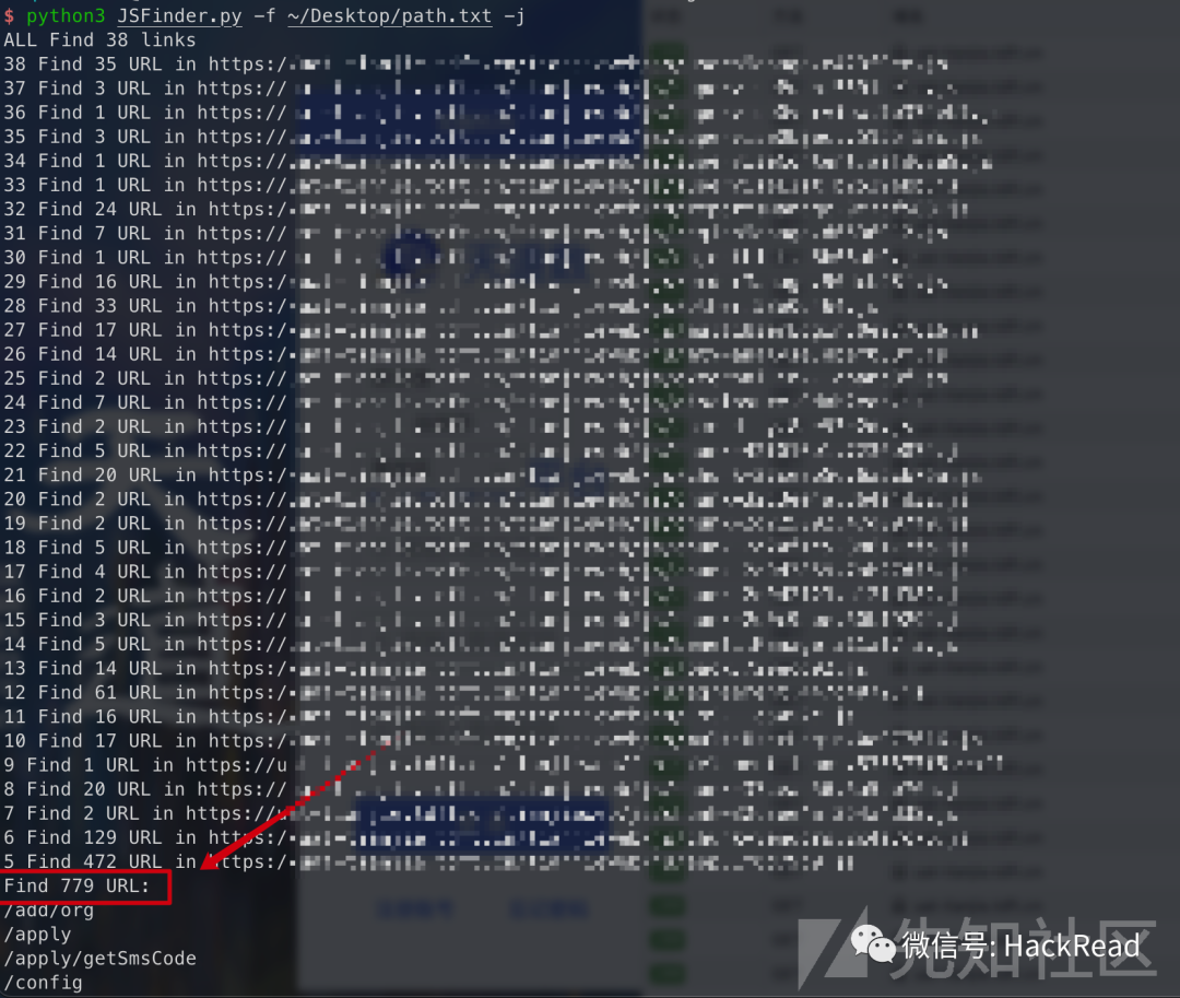 通过jsfinder对调用的38个js进行匹配,发现779条url